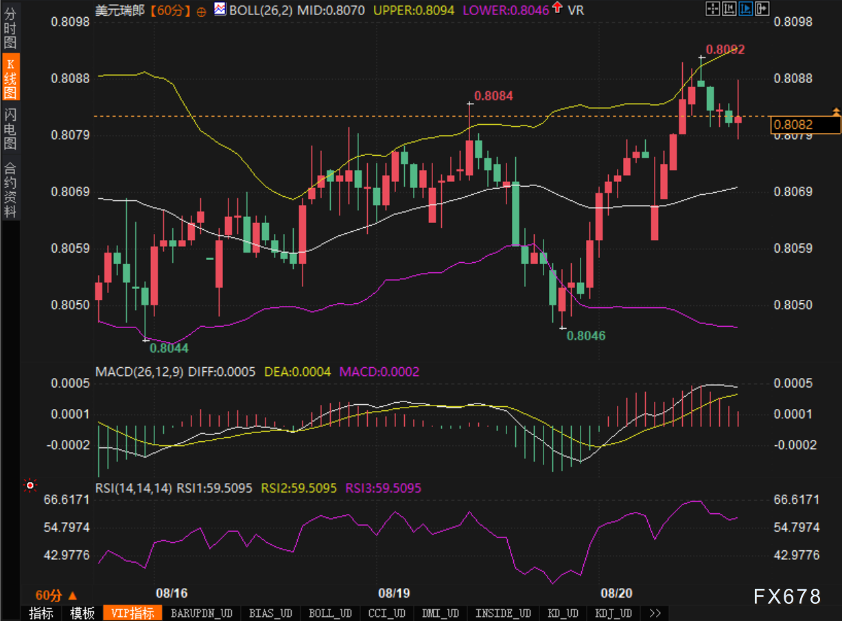 中期(数周):路径取决于政策与数据是否出现一致信号。若9月果真降息25个基点至4.00%-4.25%,且后续通胀边际放缓,美元强势可能阶段性钝化,瑞郎的顺差与避险标签将增强“逢高承压”的中期叙事,美元/瑞郎倾向于回到均值回归思路,技术上对0.8070与0.8046的反复回测将更频繁;相反,若经济数据韧性较强而政策沟通偏中性,美元的回落空间有限,美元/瑞郎或在上半区间维持“高位横盘—缓步抬升”的慢节奏,多头需要以突破0.8094并守稳来验证趋势延续。无论走向何处,风险管理层面交易员都将关注事件驱动带来的“假突破”概率,尤其在布林带带宽尚未充分扩张的环境下,“影线突破、实体未确认”的形态并不罕见。