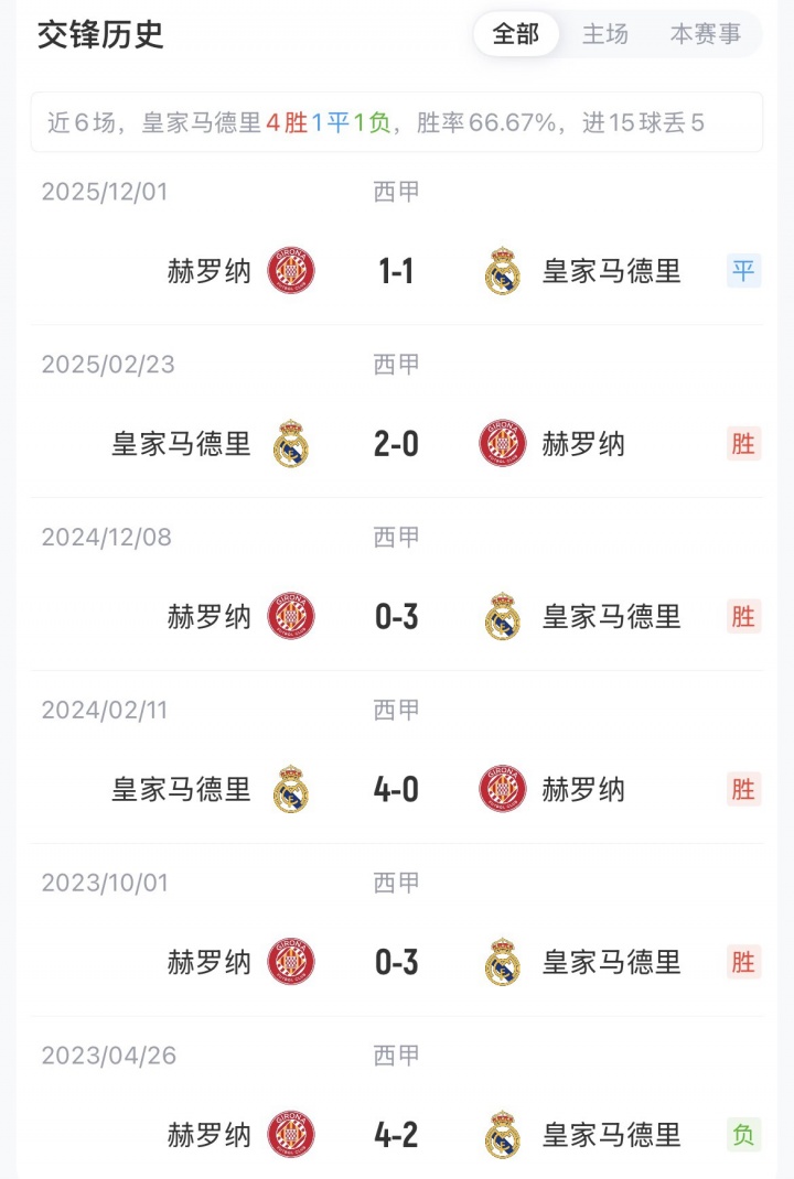 皇马暂以69分排名西甲第二,距榜首7分。赫罗纳37分暂排第12名。赛季首次交手,皇马客场1-1赫罗纳。