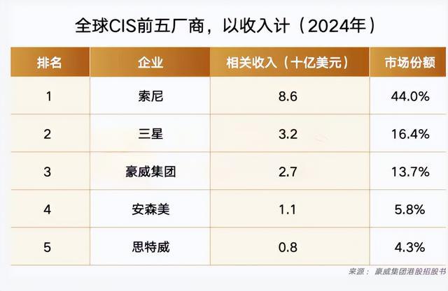 日本的索尼,一直是全球第一,然后再是韩国的三星、还有美国的安森美等,这三大厂商,在全球排名都是靠前的。