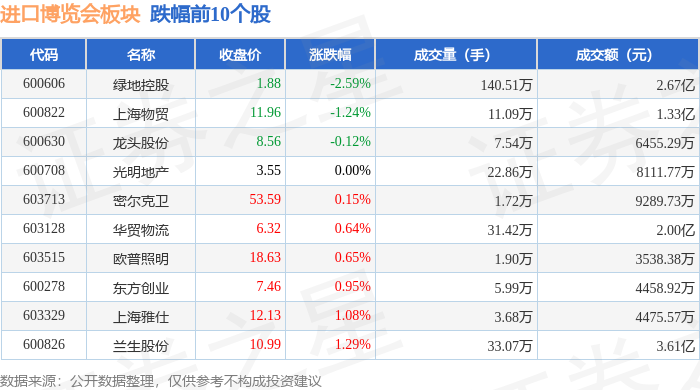 本站消息,8月1日进口博览会板块较上一交易日上涨0.41%线下配资平台,德邦股份领涨。当日上证指数报收于3559.95,下跌0.37%。深证成指报收于10991.32,下跌0.17%。进口博览会板块个股涨跌见下表: